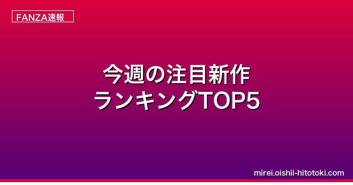 毎週更新!FANZAに新登場した作品の中から、アクセス数・購入数・評価点をもとに選んだ今週の注目新作TOP5をお届けします。